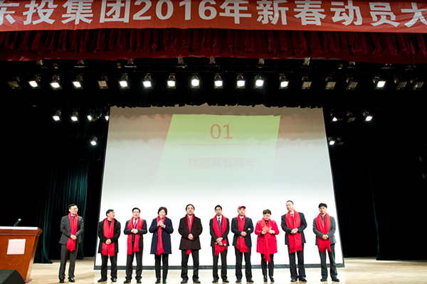 三羊开泰送旧岁,金猴奉桃迎新来;九州春雨大地绿,东投又是盛年隆。2016年2月15日(正月初八)下午1时30分,财大麦庐校区大学生活动中心礼堂内,伴随着响亮的国歌、冉冉升起的五星红旗和2000余名东投儿女们雄浑的歌声,东投集团•金太阳教育2016年新春动员大会序幕开启。