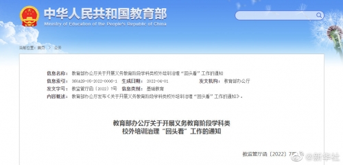 双减”政策实施以来,在党中央国务院坚强领导和各方共同努力下,义务教育阶段学科类校外培训治理取得阶段性成效,但学科类培训防反弹、防变异、防风险的任务依然艰巨。为巩固义务教育阶段学科类校外培训治理成果,日前,教育部办公厅印发了《关于开展义务教育阶段学科类校外培训治理“回头看”工作的通知》(以下简称《通知》),部署全国各地对义务教育阶段已经压减和转为非营利性的所有线上、线下学科类校外培训机构进行一次全面排查,系统查找问题并坚决整改,切实巩固校外培训治理成果。
