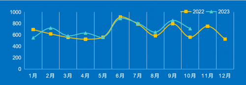 10月,市场在经历开学高峰期后,两渠道指数环比均有所下降,属于正常现象。但网店渠道指数较去年同期水平有所增长。 整体市场及数据变动 实体店渠道环比下降19.48%,同比下降5.06%,市场在开学季后正常回落,虽然呈下降,但与去年同期间的差距明显缩小。从五大地区来看,与2022年10月相比,华北、西部和东北地区同比上升,华东和中南地区表现为同比下降。与2023年9月相比,五大地区均表现为环比下降。