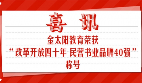2019年1月5日,由中国出版传媒商报社、中国新闻出版研究院主办的民营书业40年发展研讨会暨品牌榜推展礼在中华书局二楼多功能厅举行。在民营书业40年品牌榜发布礼上,金太阳教育凭借雄厚的综合实力荣获“改革开放四十年 民营书业品牌40强”称号。