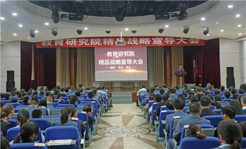 10月23日,教育研究院精品战略宣导大会在裙楼报告厅召开。院长刘春华对精品战略实施方案进行全员宣贯并公布2020届精品目标;各精品项目负责人介绍了提升措施;各岗位及职能部门代表进行了表态发言。直营事业群总裁刘金平受邀出席大会,对实施精品战略表示祝贺和期盼,会议最后进行了稿件付印授章仪式。