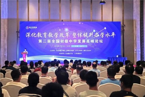 2018年7月28日,由金太阳教育集团、江西教育出版社、中学生导报社、新作文杂志社主办,中国教育学会、江西省教育厅指导的第二届全国初级中学发展高峰论坛在南昌万达文化城顺利召开。本届论坛主题为“深化教育教学改革,整体提升办学水平”,旨在助推学校“抓改革,强内涵,提质量”,落实立德树人根本任务,发展素质教育,促进学生全面发展。来自全国各地的600余位教育局长、分管教学副局长、教研室主任、校长参加了本次论坛。