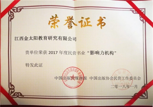 2017年11月24日,由中国版权协会主办的“第十届中国版权年会”在北京举行。年会上,有着中国“版权界奥斯卡”之称的“中国版权最具影响力企业”隆重揭晓,江西金太阳教育研究有限公司(以下简称“金太阳教育”)凭借2017年度在版权创造、运用、保护和管理等方面所取得的成绩获此殊荣。金太阳教育总经理李万强参加年会并出席颁奖仪式。
