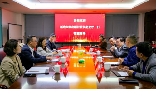 11月9日下午,延边大学出版社社长赵立才、常务副社长董花兰、社长助理禹明延、社长助理刘凯一行莅临金太阳教育参观交流。金太阳教育总经理李万强、总编辑徐昀、直营总公司总裁刘金平、名校研究院总经理黄伟等领导出席座谈会并进行了友好的会谈。