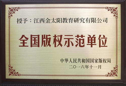12月6日,在国家版权社会服务工作交流会上,金太阳教育凭借多年来在版权保护与版权创造方面取得的突出成绩,荣获“全国版权示范单位”称号。