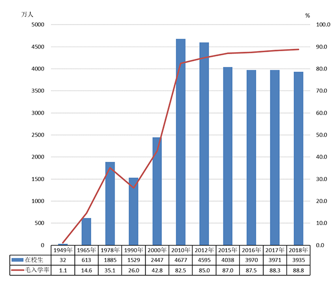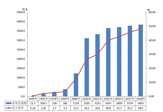 [18]包括研究生、普通本专科、成人本专科、网络本专科、高等教育自学考试本专科等各种形式的高等教育在学人数。