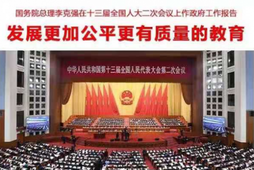 第十三届全国人民代表大会第二次会议今天上午在人民大会堂开幕。国务院总理李克强向大会作政府工作报告时指出,发展更加公平更有质量的教育,努力办好人民满意的教育,托起明天的希望。