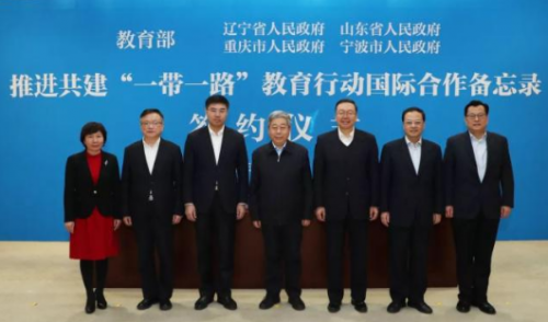 2月18日,教育部与辽宁省、山东省、重庆市、宁波市在京签署《推进共建“一带一路”教育行动国际合作备忘录》,以推动相关省市积极对接“一带一路”倡议,发挥自身区位优势,着力提高教育对外开放水平,写好教育“奋进之笔”,全面推进共建“一带一路”教育行动。