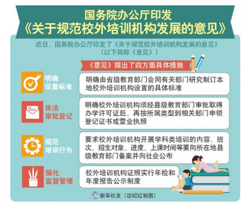 近日,国务院办公厅印发了《关于规范校外培训机构发展的意见》