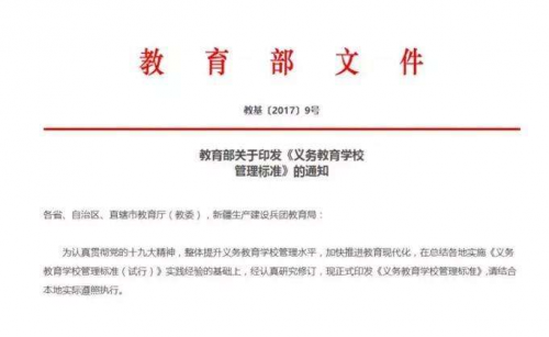 教育部日前印发实施《义务教育学校管理标准》,从保障学生平等权益、促进学生全面发展、引领教师专业进步、提升教育教学水平、营造和谐美丽环境、建设现代学校制度六大方面,明确了学校的主要管理职责,共涉及22项管理任务,包含“坚持免试就近入学原则”“实行均衡编班”等88条具体内容。