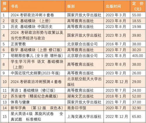 2023年11月上半月文化教育类图书销售排行榜